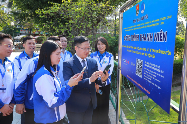 Trước thềm Đại hội, Đoàn đại biểu đã dâng hương và khánh thành công trình thanh niên số hóa tại Đài tưởng niệm Anh hùng liệt sỹ tỉnh Thái Nguyên.