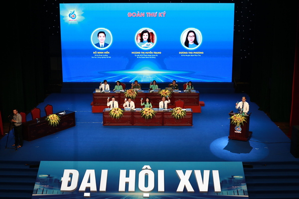 Các đại biểu biểu quyết thông qua chương trình đại hội.