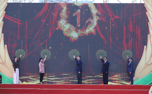 Các đại biểu thực hiện nghi thức khai mạc Triển lãm. |