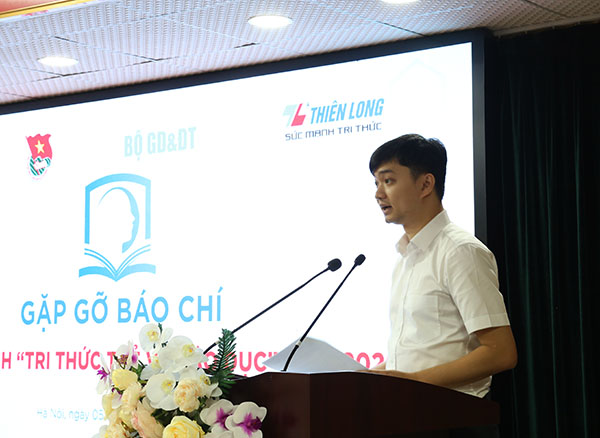 Anh Nguyễn Minh Triết, Ủy viên Ban Thường vụ, Trưởng Ban Thanh niên Trường học Trung ương Đoàn, Trưởng Ban Tổ chức thông tin tới báo chí về chương trình "Tri thức trẻ vì giáo dục" năm 2020. |