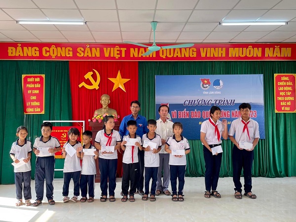 Ngoài ra, Tỉnh Đoàn – Hội LHTN Việt Nam tỉnh Lâm Đồng cũng trao 20 suất học bổng cho các em học sinh có hoàn cảnh khó khăn tại xã Nhơn Châu, 50 phần quà cho các chiến sĩ đang công tác tại đồn biên phòng Nhơn Châu. Tổng giá trị của chương trình gần 100 triệu đồng.