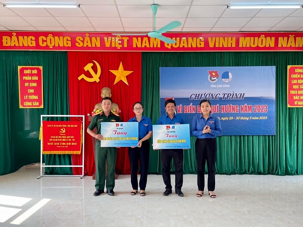 Tại xã đảo Nhơn Châu, đoàn công tác đã triển khai nhiều hoạt động như: trao tặng 1000 lá cờ Tổ quốc để thực hiện “Đường cờ thanh niên”, bàn giao công trình thanh niên “Con đường bích họa”, “Sân bóng thanh niên”, “Pano tuyên truyền bảo vệ môi trường”.