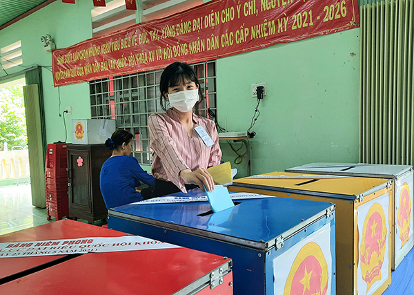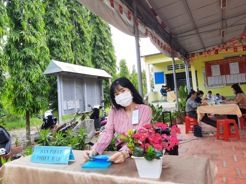 Niềm hạnh phúc của Phương Uyên còn nhân đôi khi lần đầu tham gia bầu cử, Uyên lại được chọn vào tổ bầu cử ở địa phương. NVCC |