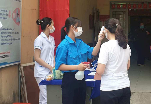 Người trẻ đi bỏ phiếu đều thực hiện tốt các quy định phòng dịch Covid-19. CHÂU TIẾN LỘC |