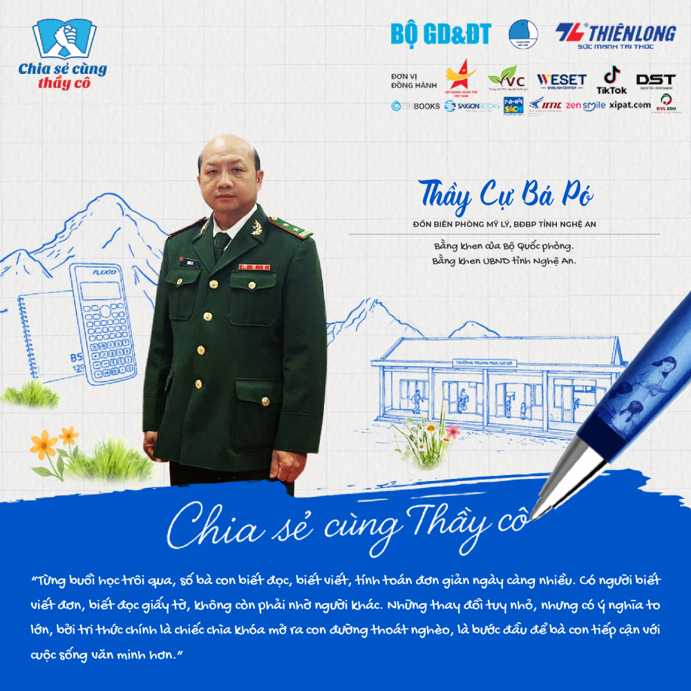 Chia sẻ về việc đứng lớp xóa mù chữ, Trung tá Cự Bá Pó cho hay: "Tôi từng nghĩ rằng nhiệm vụ của mình là tuần tra bảo vệ đường biên, giữ bình yên cho Tổ quốc. Nhưng khi được phân công tham gia công tác xóa mù chữ tại bản Piêng Vai, tôi mới thấu hiểu sâu sắc hơn sứ mệnh của người lính biên phòng: Mang ánh sáng tri thức đến những nơi còn thiếu thốn, gieo hạt giống hy vọng giữa núi rừng cheo leo".