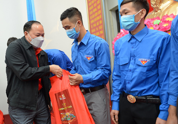 Ông Trương Văn Tuấn, Giám đốc Vùng khu vực phía Bắc TCT Bia - Rượu - Nước giải khát Sài Gòn trao biển tượng trưng cho thanh niên công nhân, lao động tại các khu công nghiệp trên địa bàn Tp. Hà Nội. |