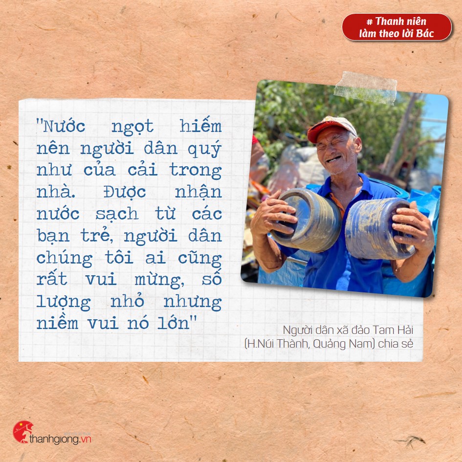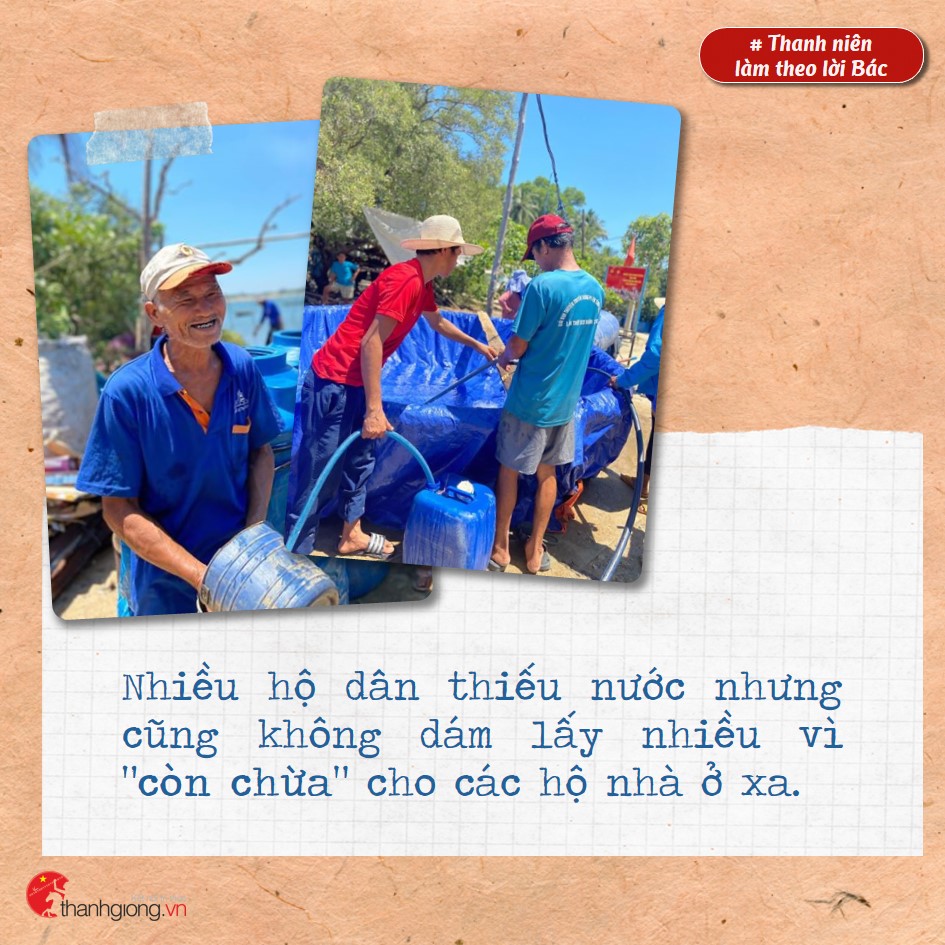 Theo chị Thảo, sau khi có kế hoạch, huyện đoàn đã xin tài trợ bồn chứa nước từ công ty TNHH MTV Quốc tế Sơn Hà Chu Lai, bàn với Chi đoàn công ty CP Cấp thoát nước Quảng Nam để cung cấp nước miễn phí, rồi huy động hàng trăm bạn thanh thiếu niên góp những ngày công lao động.