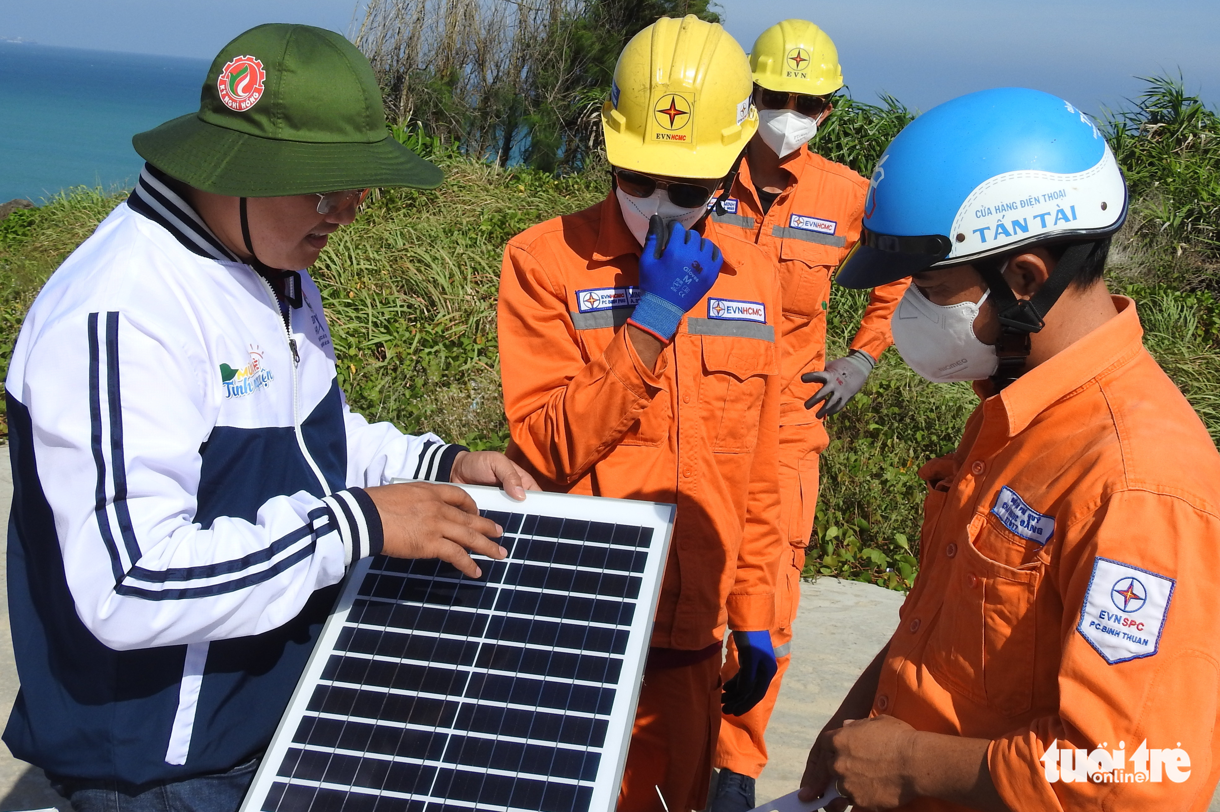 "Với điều kiện thời tiết, gió nhiều tại vị trí cột mốc chủ quyền, anh em chúng tôi đã tính toán lắp đặt thật chắc các tấm pin để đảm bảo tuổi thọ cho công trình" - anh Kiệt chia sẻ.