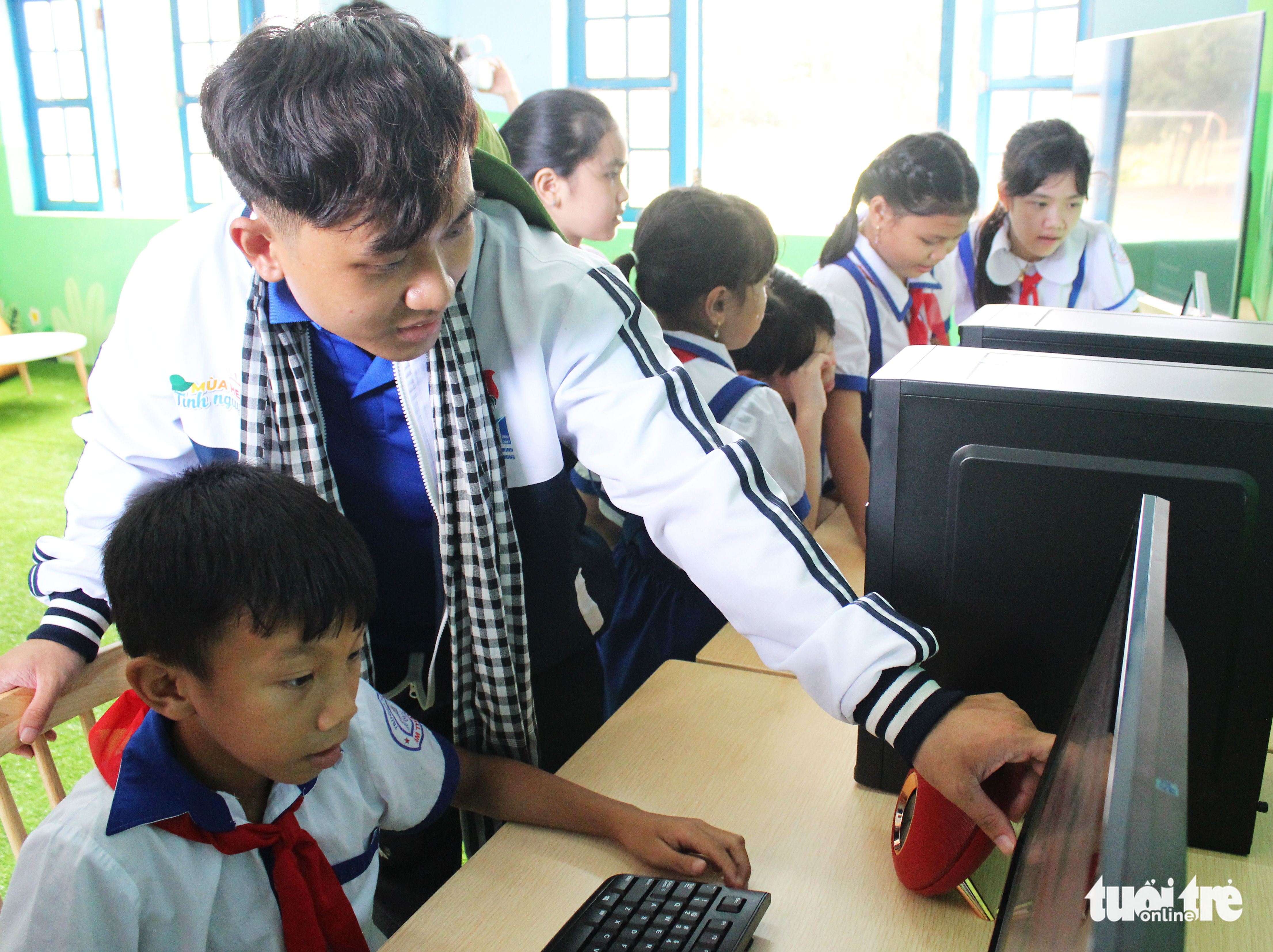 Tại Trường tiểu học Tam Thanh, thư viện sáng tạo, hệ thống thực tế ảo giáo dục cho học sinh đã hoàn thiện và đưa vào sử dụng. Từ phòng thư viện cũ, các chiến sĩ Mùa hè xanh đã sơn sửa lại, vẽ trang trí tranh tường, biến thành không gian sắc màu tuổi thơ thật tươi mới.