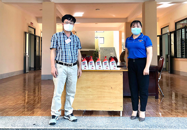 Trước đó, huyện đoàn Diễn Châu cũng đã tới động viên và tặng điểm thi xã Diễn Bích 10 chai nước rửa tay sát khuẩn, 10 chai nước rửa tay Lifeboy, 100 chai nước và 50 quả dừa…