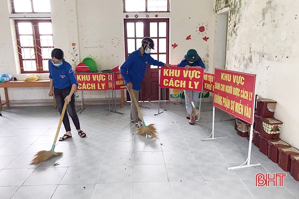 Tại Thạch Hà, các đội tình nguyện nhanh chóng ra quân hỗ trợ vệ sinh, dọn dẹp khu cách ly tập trung.