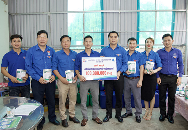 Cũng trong ngày, đại diện Ban Thường vụ Tỉnh Đoàn - Ban Thư ký Hội LHTN Việt Nam tỉnh đã hỗ trợ vốn vay từ quỹ quốc gia giải quyết việc làm trị giá 100 triệu đồng cho mô hình chế phẩm sinh học của bạn Nguyễn Trung Quỳnh - thanh niên phát triển kinh tế tại phường Quỳnh Phương; đồng thời trao tặng 01 con bò sinh sản cho bạn Hồ Văn Thướng - Bí thư chi đoàn Thành Công, xã Quỳnh Liên, thị xã Hoàng Mai là thanh niên khuyết tật, có nhiều đóng góp cho công tác Đoàn và phong trào thanh thiếu nhi tại địa phương.