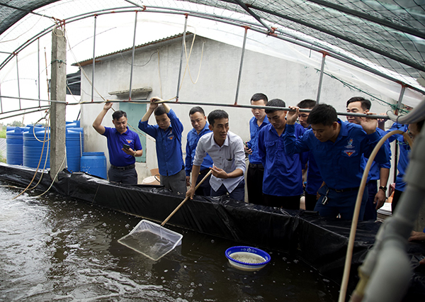 Cũng trong khuôn khổ chương trình, các đại biểu đã đi thăm 1 số mô hình Thanh niên PTKT tiêu biểu tại thị xã Hoàng Mai: trồng rau sạch, nuôi tôm thẻ, kinh doanh dịch vụ nhà hàng,... |