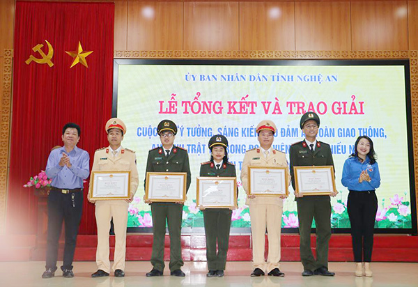 Danh sách các tác giả, nhóm tác giả đạt giải Cuộc thi “Ý tưởng, sáng kiến đảm bảo an toàn giao thông, an ninh trật tự trong đoàn viên, thanh thiếu niên” lần thứ nhất: Giải Nhất: Nhóm tác giả "Vì dân phục vụ", Đoàn Thanh niên Công an tỉnh Nghệ An. Giải Nhì: Giải Ba: |