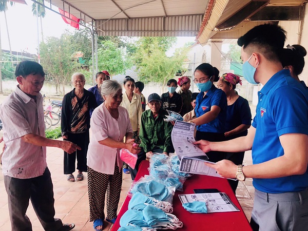 ĐVTN xã Đặng Sơn, Đô Lương đã vận động chủ xưởng may hỗ trợ xưởng may để may khâu trang và phát 300 khẩu trang miễn phí cho người dân. |
