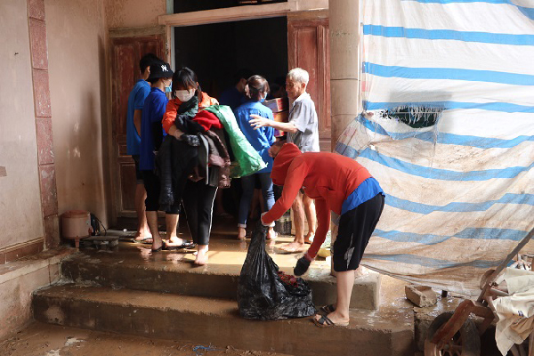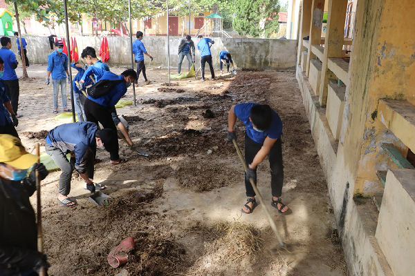 Các bạn đã cùng nhân dân dọn dẹp nhà cửa, khơi thông mương nước, giải tỏa các đoạn đường bị tắc do rác ứ đọng. |