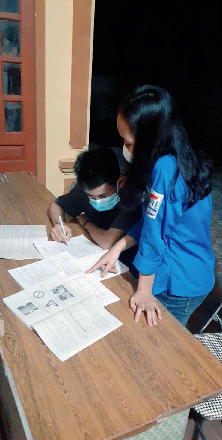 Do công tác giãn cách xã hội để đảm bảo an toàn cho người dân, việc hỗ trợ các sỹ tử tại xã Diễn Bích, huyện Diễn Châu chỉ có thể được thực hiện từ xa thông qua các phương tiện điện tử như máy tính, điện thoại thông minh với các ứng dụng kết nối