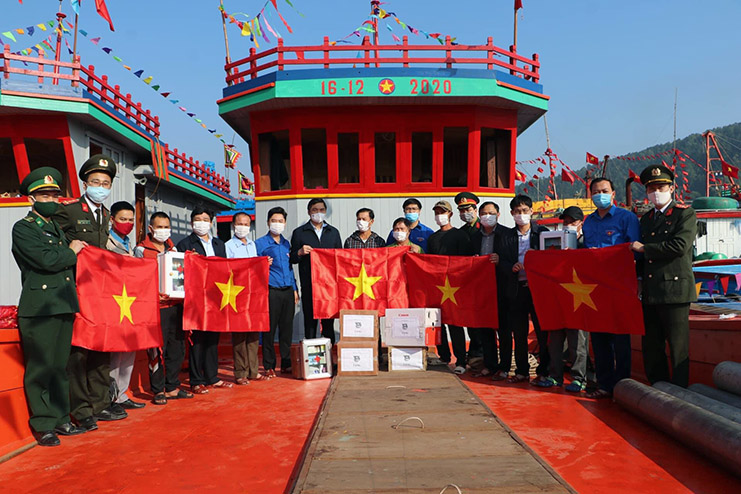 Ban Thường vụ Tỉnh đoàn trao tặng cờ, áo phao, tủ thuốc cho ngư dân bám biển