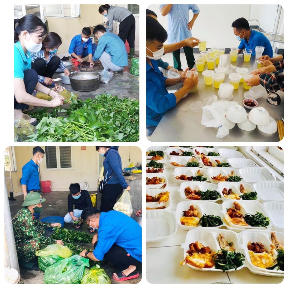 Tại các khu cách ly tập trung ở Khách Sạn Sông Quỳnh và Sông Hoàng, các Đội Thanh niên tình nguyện phản ứng nhanh cùng phối hợp Hội Phụ nữ chuẩn bị bữa ăn đầy đủ cho hơn 70 công dân đang cách ly.