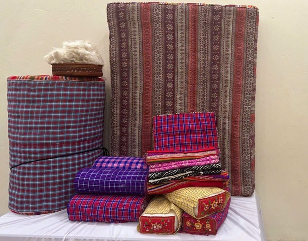 Không giống như làm theo cách thủ công truyền thống đơn thuần, chị cùng nhóm cộng sự đã khảo sát thị trường, học hỏi kỹ thuật, thử nghiệm nhiều mẫu đệm, gối từ bông gạo - phơi khô, giặt sạch, sấy, đánh tơi bông để đạt chuẩn vệ sinh, mềm mại và dễ dùng với người dùng hiện đại. Vỏ đệm, vỏ gối được lựa chọn từ chất liệu cotton, lanh, thô đũi - thậm chí có mẫu được thêu tay hoạ tiết truyền thống, để mỗi sản phẩm vừa tiện ích, vừa mang đậm bản sắc văn hóa Mường.