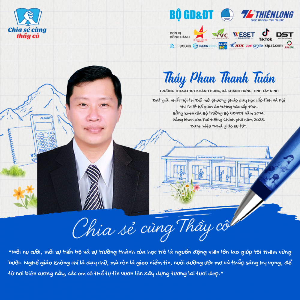 Hai mươi mốt năm qua, thầy Phan Thanh Tuấn đã trở thành tấm gương sáng về tinh thần trách nhiệm, về lòng tận tụy với nghề. Giữa miền biên giới còn lắm khó khăn, thầy vẫn ngày ngày lặng lẽ cống hiến, mang đến tri thức, khơi dậy niềm tin và thắp sáng những ước mơ nhỏ bé. Hình ảnh người thầy giản dị ấy với chiếc áo sơ mi bạc màu, dáng người hiền hậu, nụ cười ấm áp đã in sâu trong ký ức bao thế hệ học trò vùng biên, như một minh chứng đẹp đẽ cho sứ mệnh cao quý của nghề giáo: gieo hạt giống tri thức, vun bồi tương lai cho quê hương.