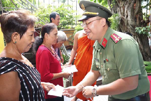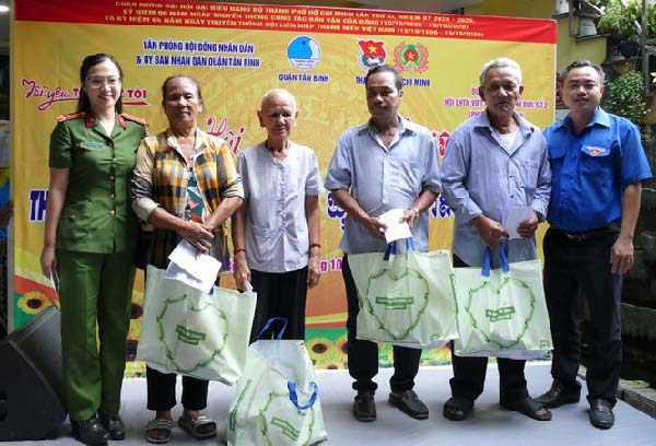 Trong dịp này, Ban Thường vụ Đoàn Công an TPHCM đã vận động Phòng Cảnh sát quản lý hành chính về trật tự xã hội CATP và phối hợp với Hội LHTN Việt Nam quận Tân Bình trao tặng 30 phần quà với tổng kinh phí 10 triệu đồng dành cho 30 hộ gia đình là các hộ thuộc các dân tộc, tôn giáo có hoàn cảnh khó khăn trên địa bàn.
