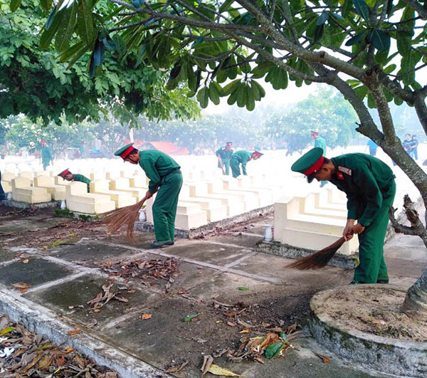 ĐVTN lực lượng vũ trang dọn dẹp, vệ sinh Nghĩa trang Liệt sĩ. |