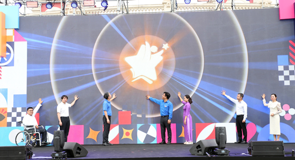 Các đại biểu thực hiện nghi thức khởi động Ngày hội. |