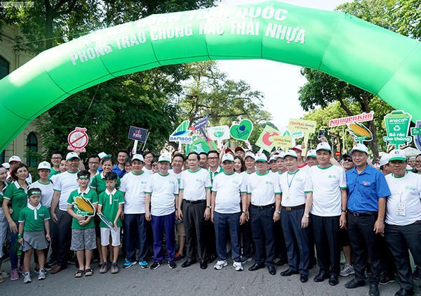 Sau đó, Thủ tướng Chính phủ và các đại biểu đi bộ đồng hành tại phố đi bộ khu vực Bờ hồ Hoàn Kiếm để cổ vũ, hưởng ứng phong trào chống rác thải nhựa lan tỏa, phát triển mạnh mẽ hơn trên phạm vi cả nước.