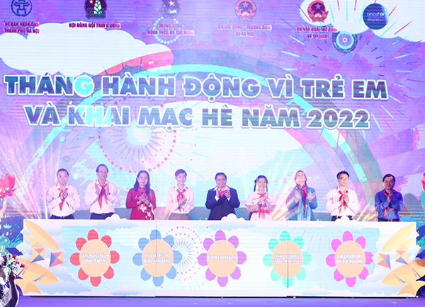 Thủ tướng Phạm Minh Chính cùng các lãnh đạo phát động Tháng hành động vì trẻ em và khai mạc hè năm 2022. |