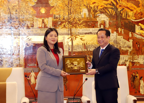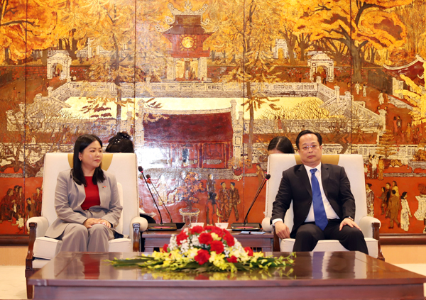 Phó Chủ tịch Thường trực Hội đồng Nhân dân TP Hà Nội tặng quà cho bà Bà Sook Yee Lai. |