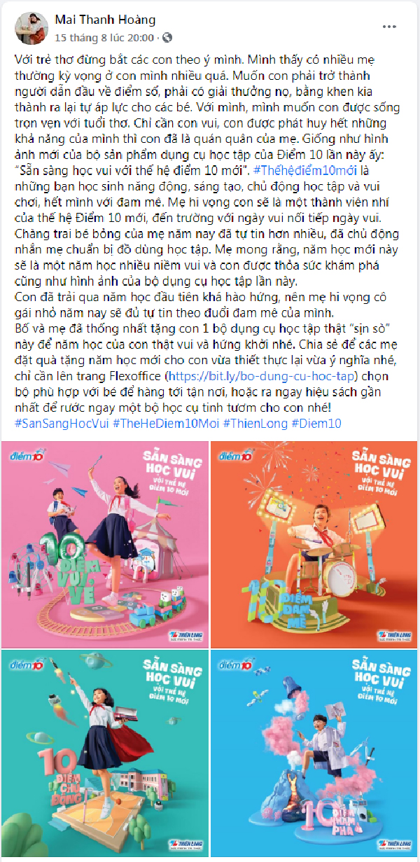 Mẹ trẻ có tài khoản Facebook Mai Thanh Hoàng chia sẻ trên mạng xã hội về bộ ảnh của nhãn hàng Điểm 10. |
