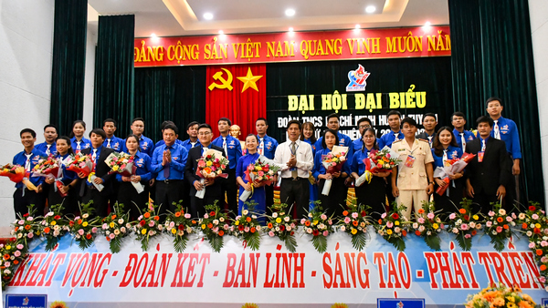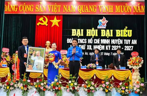 Thường trực Tỉnh Đoàn và lãnh đạo Huyện ủy Tuy An tặng hoa chúc mừng Ban chấp hành Đoàn TNCS Hồ Chí Minh huyện Tuy An khóa XII, nhiệm kỳ 2022-2027.