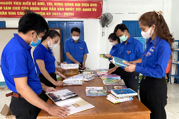 Các anh chị ĐVTN phân loại sách. |