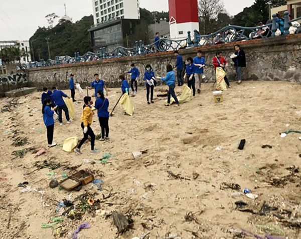 ĐVTN Hạ Long ra quân vệ sinh môi trường biển khu vực Bãi Cháy. |
