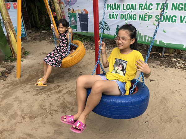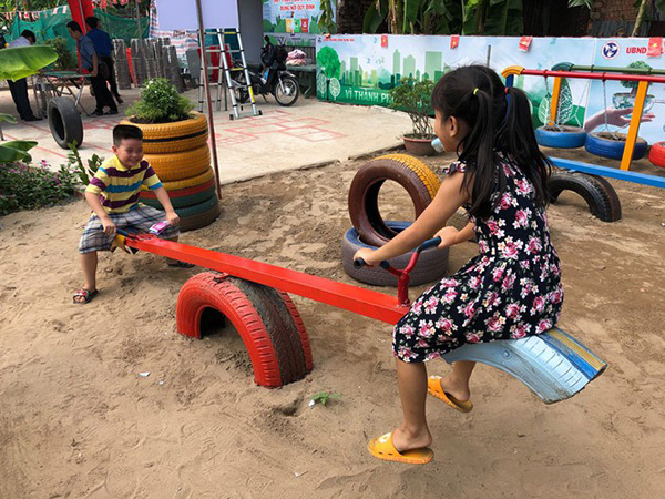 Theo anh Võ Quốc Bình, Đội trưởng Đội Công tác xã hội thanh niên TP.HCM thuộc Trung tâm Công tác xã hội Thanh niên TP.HCM, với ý tưởng xây dựng sân chơi thân thiện với môi trường nên các tình nguyện viên đã tận dụng những vật dụng đã cũ như: lốp xe, mũ bảo hiểm, chai nhựa… làm thành những món đồ chơi rất thú vị cho các em thiếu nhi chơi.