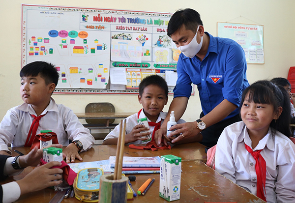 *) Sáng cùng ngày, Hội đồng Đội tỉnh cũng đã trao tặng 1.100 hộp sữa, 100 chai nước sát khuẩn và 2.000 khẩu trang cho các em học sinh tại 3 trường mẫu giáo, tiểu học, THCS của xã Phi Tô, huyện Lâm Hà với tổng kinh phí chương trình là 130 triệu đồng.