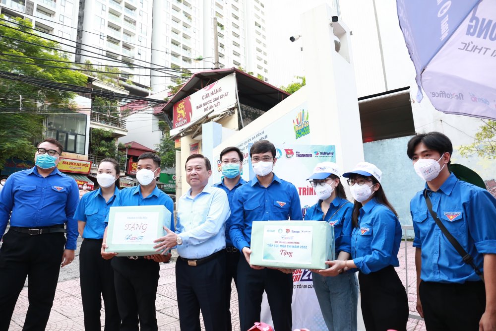 Bí thư thường trực T.Ư Đoàn Bùi Quang Huy thăm, tặng quà tình nguyện viên Tiếp sức mùa thi