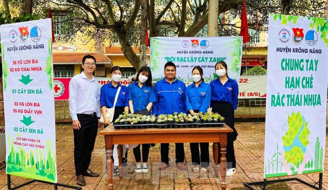 (CTG) Hoạt động “Đổi rác thải nhận cây xanh” của tuổi trẻ vùng sâu huyện Krông Năng, tỉnh Đắk Lắk nhằm nâng cao nhận thức của mọi người về bảo vệ môi trường, tạo mảng xanh tại khu vực mình đang sinh sống.
