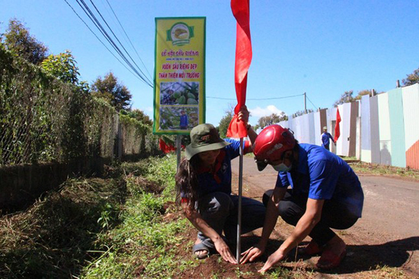 (CTG) Sắp đến ngày diễn ra Lễ hội sầu riêng, Huyện đoàn Krông Pắc đã có nhiều hoạt động thiết thực như phát quang, dọn dẹp vệ sinh môi trường, trồng cây và cắm cờ dọc các tuyến đường góp phần mang lại cảnh quan đẹp mắt.