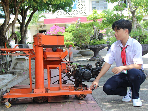(CTG) Hai học sinh Nguyễn Thế Phong và Nguyễn Vũ Phương Uyên (lớp 8A1, Trường THCS Hoài Sơn, xã Hoài Sơn, TX.Hoài Nhơn, Bình Định) sáng chế máy phơi, giê và thu gom nông sản đa năng giúp nông dân giảm được sức lao động trong mùa thu hoạch.