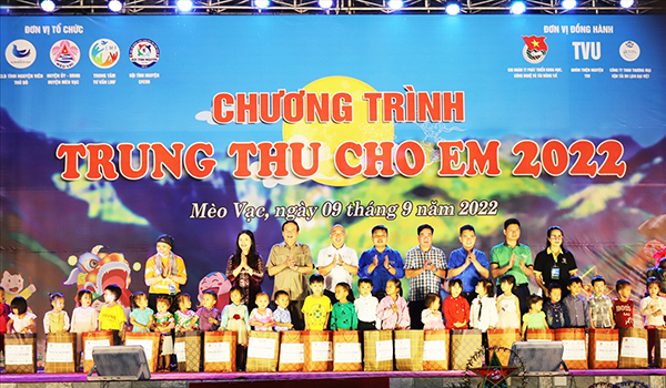 (CTG) Nhân dịp Tết Trung thu 2022, tối 9/9, tại sân vận động thị trấn Mèo Vạc, Đoàn cơ quan Thanh niên Trung ương Đoàn, Trung tâm tư vấn LMF (Hội Liên hiệp Thanh niên Việt Nam), Câu lạc bộ Tình nguyện Thủ Đô, Đội tình nguyện CFCVN phối hợp Huyện ủy -...