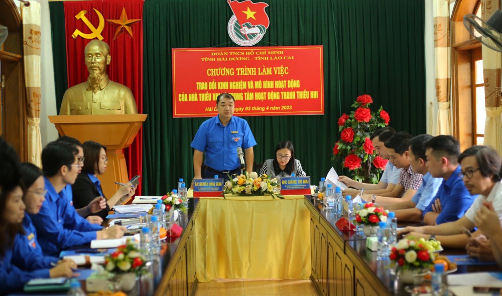 (CTG) Chiều 3/4, tại Phòng họp Nhà Thiếu nhi tỉnh, Ban Thường vụ Tỉnh đoàn đón tiếp Đoàn công tác của Tỉnh đoàn Lào Cai về thăm và trao đổi kinh nghiệm và mô hình hoạt động của Nhà Thiếu nhi và Trung tâm hoạt động Thanh thiếu nhi.