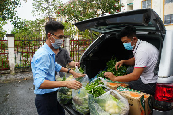 Rau củ và nhu yếu phẩm trao tặng cho du học sinh đang học tập tại Campuchia. - Ảnh: Hòa Hội |