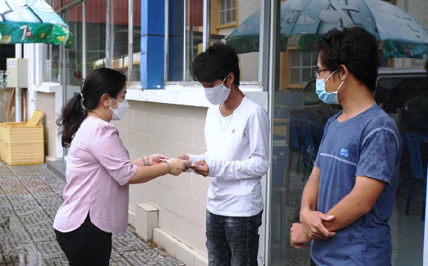 Đại diện Thành đoàn Cần Thơ trao tặng quà cho du học sinh Campuchia đang học tập tại Cần Thơ trong mùa dịch. |