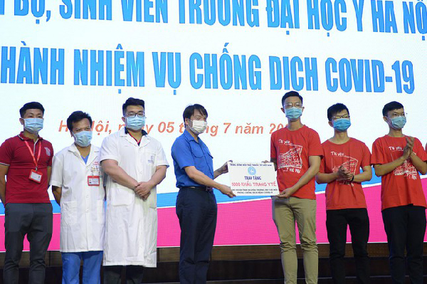Ngày, 5/7, trường ĐH Y Hà Nội đã tổ chức tiễn các cán bộ, học viên và sinh viên tình nguyện của lên đường chi viện cho Bình Dương chống dịch COVID-19, anh Nguyễn Minh Triết - Phó Chủ tịch thường trực T.Ư Hội Sinh viên Việt Nam và chị Chu Hồng Minh - Bí thư Thành Đoàn Hà Nội tham dự chương trình.