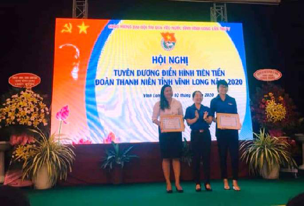 Phương Thảo nhận giấy khen điển hình tiên tiến Đoàn thanh niên tỉnh Vĩnh Long năm 2020. |