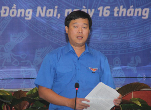 Bí thư Tỉnh Đoàn Đồng Nai Nguyễn Cao Cường nêu ý kiến tại hội nghị. |