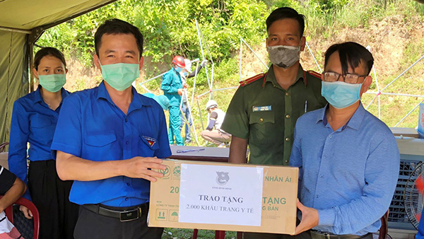 Ban tổ chức đã phối hợp với Hội Doanh nhân trẻ tỉnh Bình Định trao tặng 2.000 khẩu trang y tế, lắp đặt 1 lều bạt với tổng trị giá gần 70 triệu đồng tại chốt kiểm tra y tế phòng, chống dịch Covid-19 xã Canh Hòa, H.Vân Canh (ảnh).
