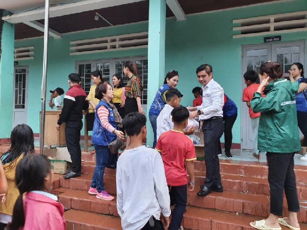 Đoàn từ thiện mang theo nụ cười và lòng đồng cảm sâu sắc đến với đồng bào khúc ruột miền Trung. |